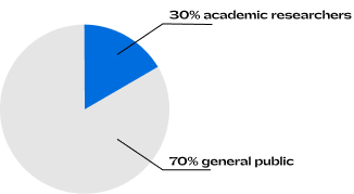 The biggest part of NLI users are the general Israeli public, but not only. Academics and researchers use the catalog every day, and they make up 30% of the overall users.
