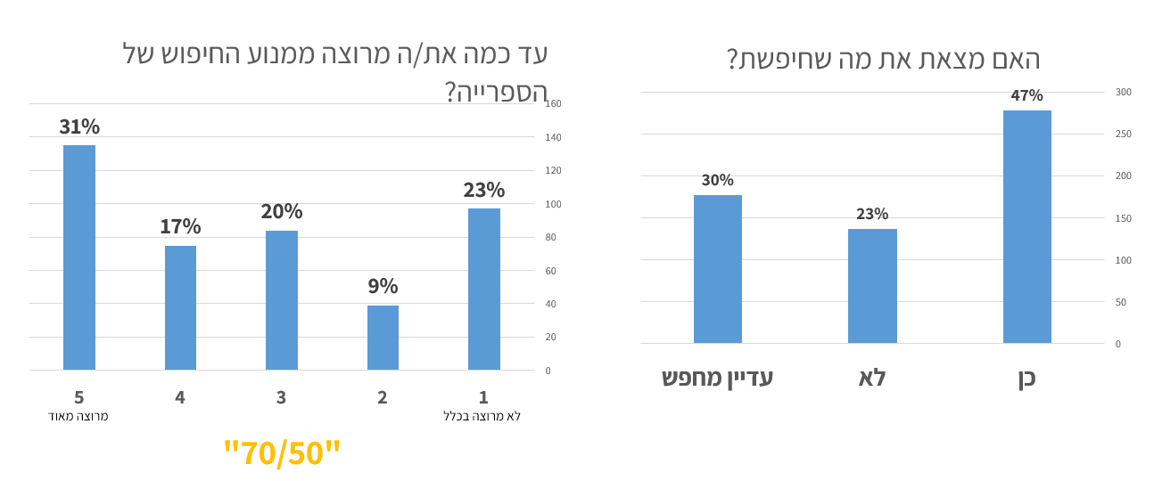 THE AVERAGE SATISFACTION LEVEL WITH THE SEARCH EXPERIENCE IS MEDIUM (3.3), 50% COULDN’T FIND WHAT THEY WERE LOOKING FOR