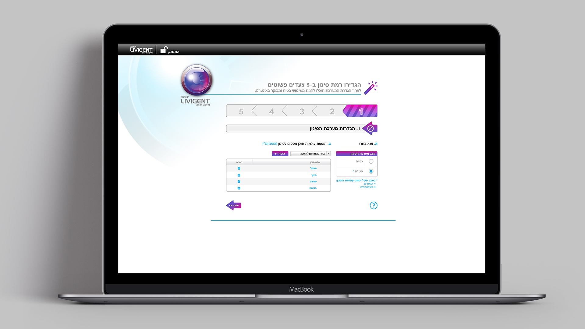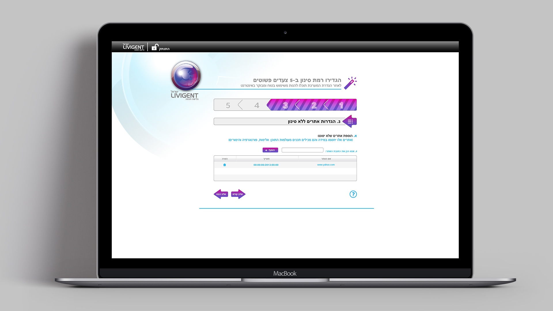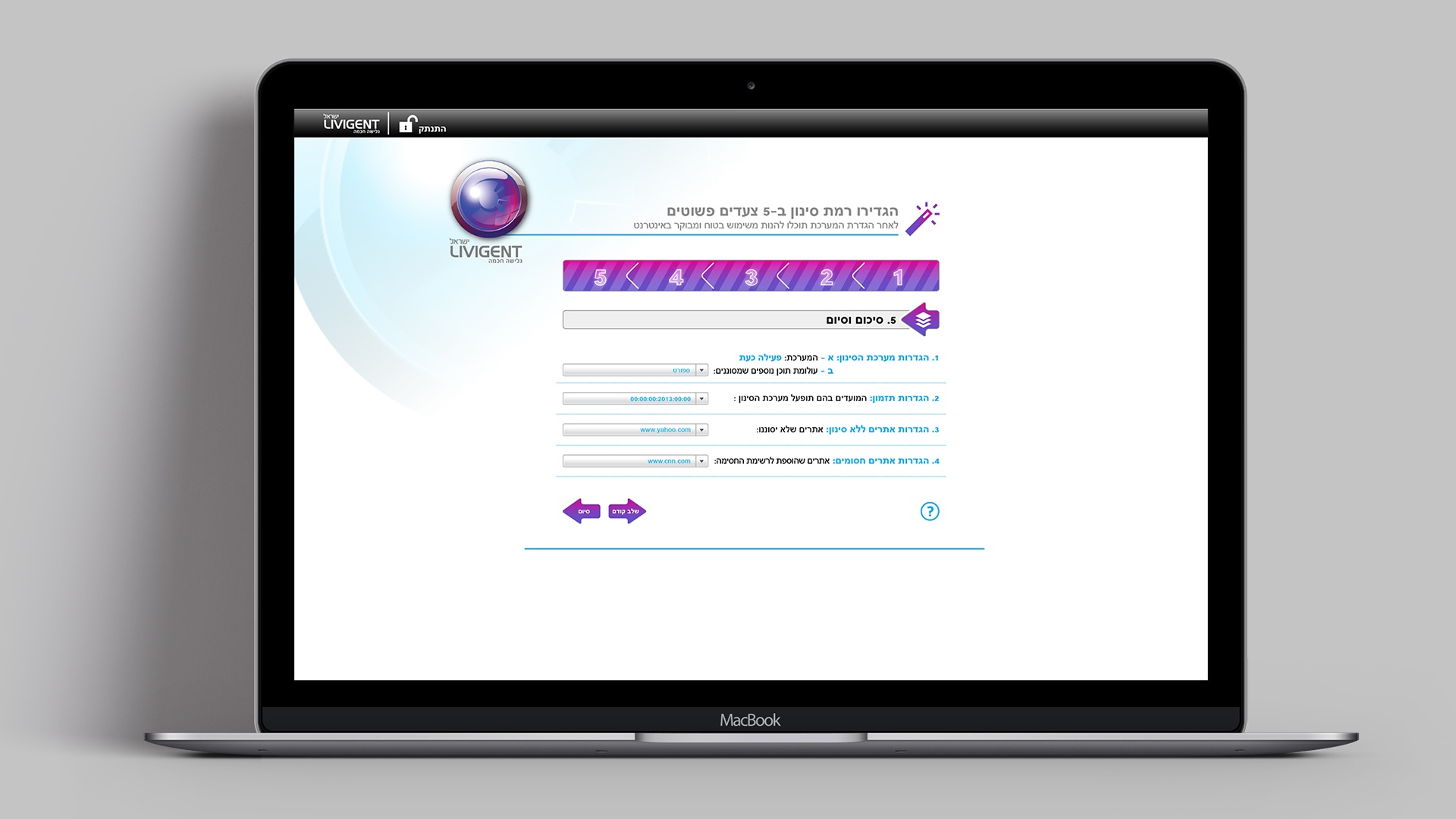 UI Design for Livigent Web Content Filtering Service