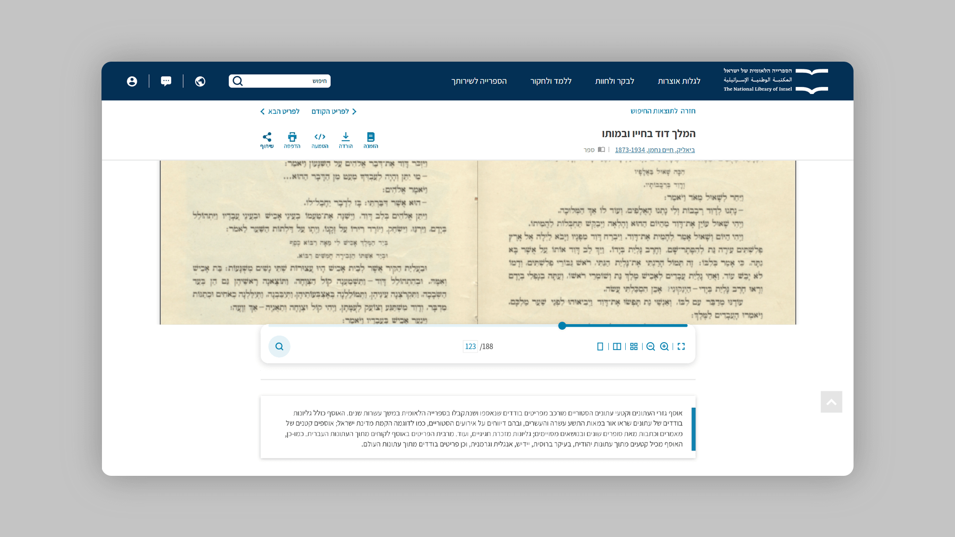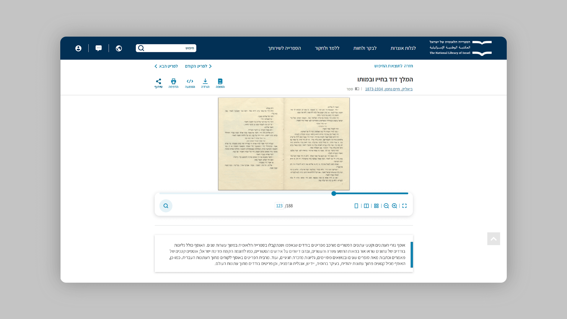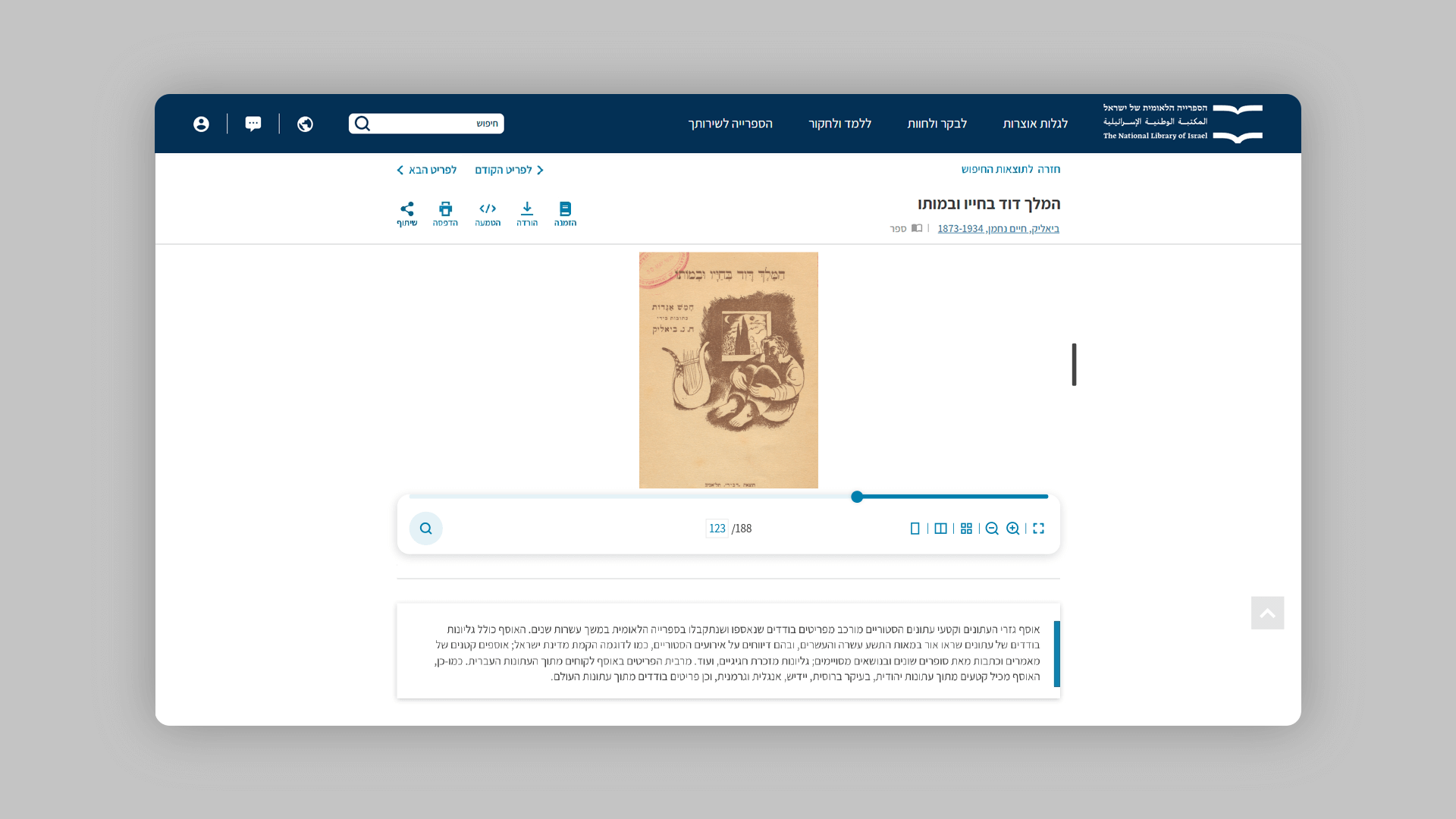 As a substantial component of the National Library’s item pages, the book viewer allows users to read “book” items digitally directly from their computer.