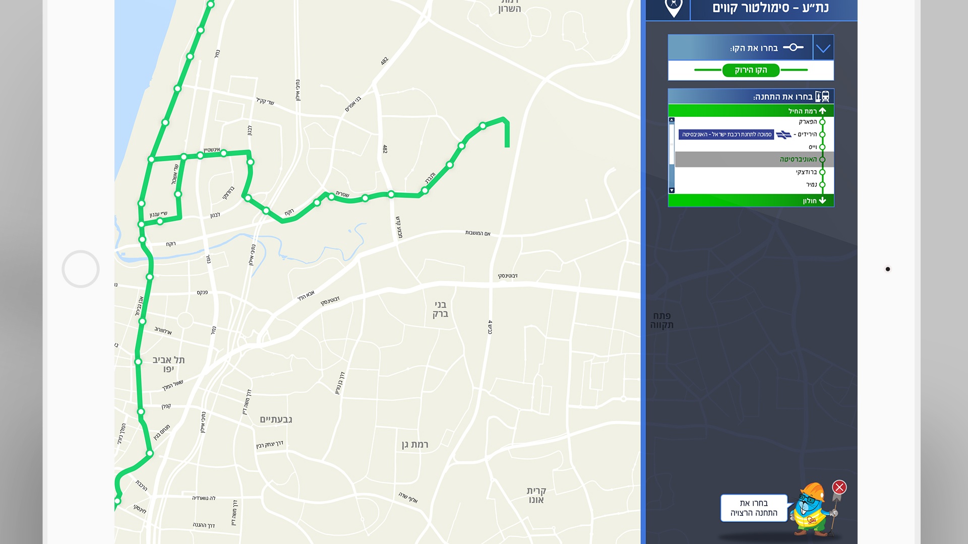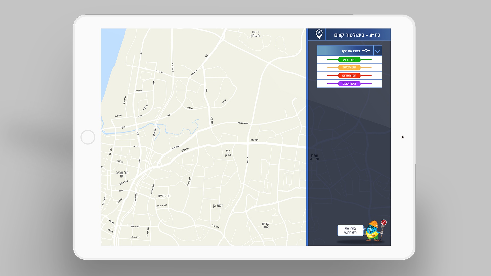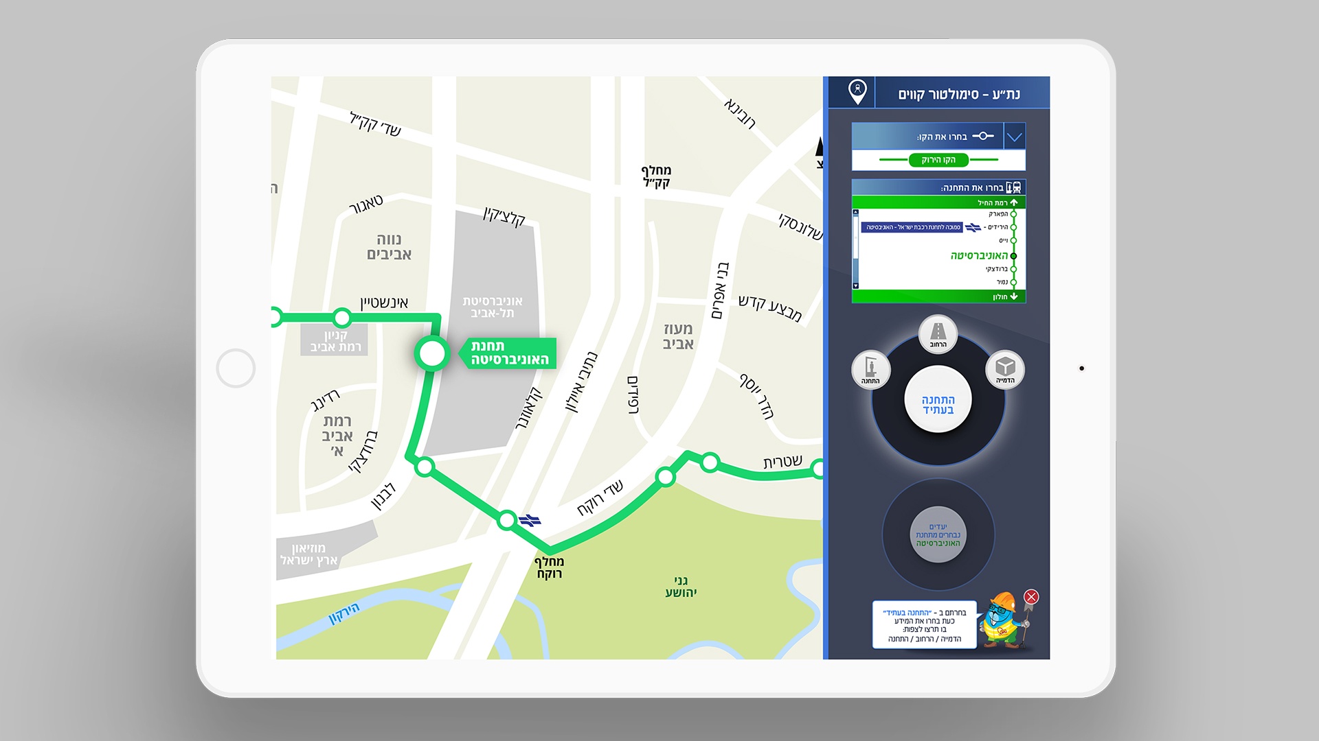 This Simulator Provide comprehensive information about the Mass Transit System Project – Which is carried out by NTA (govermental company) in Gush Dan region.
