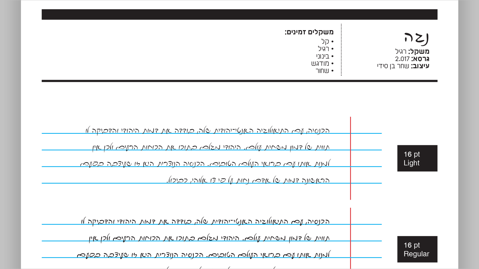 Noga – An Hebrew Handwriting Style font family, Contains 5 weights: